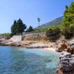 The Mlaska Beach lies in an exquisite sandy cove near Sućuraj on Hvar Island’s north side. It is surrounded by pine trees and an abundance of Mediterranean shrubbery. The beach has a restaurant and small shop for essentials There is a campsite, half of which is reserved for naturists, who have their own swimming beach.