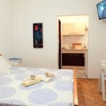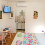 The accommodation available consists of 3 studio apartments, 2 rooms and a large family apartment in Vitarnja, a quiet seaside area just outside Jelsa. Our building is just 80 meters from the sea and a rocky beach. There are several more small shingle beaches in charming coves within easy walking distance. The house is surrounded by a garden containing many Mediterranean plants, such as olives, figs, pomegranates, lemons, rosemary … The environment is a perfect tonic for all the senses, guaranteeing a perfect, relaxing holiday. And if you want fun activities for adults and/or children, there are many of different kinds within easy reach.