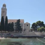 Samostan benediktinki nalazi se na istom mjestu još od 1664. godine. Prvobitno se nalazio u stambenom kompleksu obitelji pjesnika Hanibala Lucića, a snaha Julija ostavila ga je u oporuci benediktincima 1591. Pored samostana je barokna crkva sv. Antuna opata i Ivana Krstitelja iz 17. stoljeća, također mjesto u kojem se nalazi samostanska zbirka umjetnina i čipka od agave. Časne sestre izrađuju čipku od niti agave od 19. stoljeća, a njihova je tradicija uvrštena u ‘Čipkarstvo u Hrvatskoj’ na UNESCO-ov Reprezentativni popis nematerijalne kulturne baštine čovječanstva.