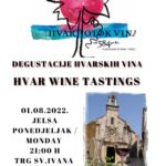 Degustacije hvarskih vina održat će se u ponedjeljak 01.08.2022. na Trgu sv. Ivana s početkom u 21:00h.