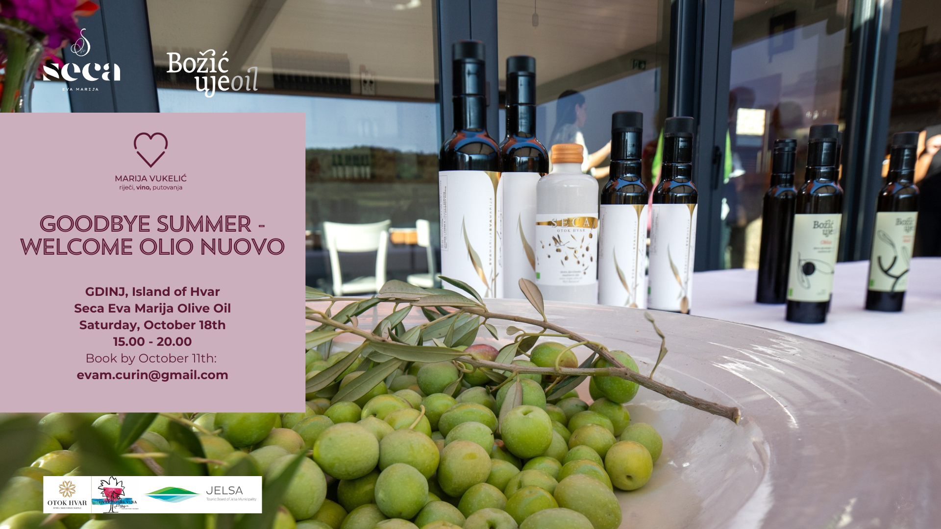 Maslinova su ulja jedan od značajnijih čimbenika u gastro ponudi Dalmacije, stoga je turistička zajednica općine Jelsa odlučila maslinarima i maslinarstvu pružiti dodatnu vidljivost I ukazati na njihovu važnost, prema ideji Marije Vukelić, sommelierke za maslinova ulja i vinske promotorice. Domaćin događaju je maslinarka Eva Marija Čurin i njezina kušaonica Eva Marija Seca, usred maslinika. Nakon vrlo uspješne ljetne turističke sezone i berbe grožđa, na otoku Hvaru sredinom listopada počinje berba i prerada maslina te proizvodnja maslinova ulja, stoga je pravi trenutak reći novom ulju – dobro nam došlo!