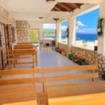 Sjenovita terasa je mjesto mirnih doručaka, opuštajućih popodnevnih odmora i atraktivnih gurmanskih večera koje obiluju ribom i drugim plodovima mora, uz domaće vino, maslinovo ulje i povrće iz vlastitog vrta.